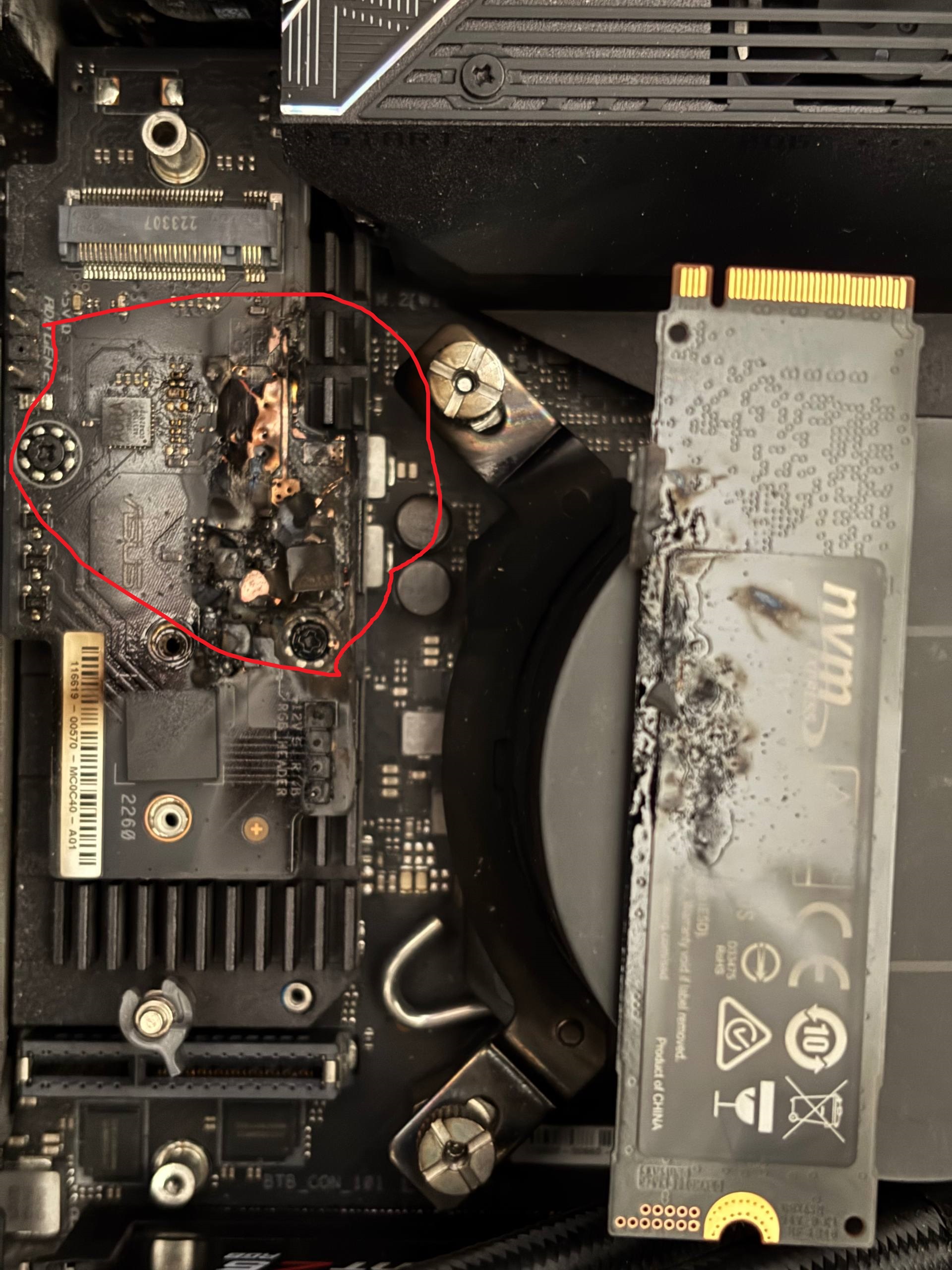 خیر هیچ علايمی از خیسی هم نبود نه در زمانی که اتفاق افتاد نه تا الان که چک کردم. فکر میکنم احتمالش هست ولی بسیار کم بخاطر سی پی یو باشه بدلیل اینکه این اسلات m.2 که اتیش گرفته برای سی پی یو بوده ولی گرمای غیرعادی فقط در همونجا حس میشد. باز هم فکر نمیکنم دمای سی پی یو بالا بوده باشه و این اتفاق بخاطر اورهیت شدن سی پی یو باشه چون هیچ افت پرفورمنسی هم دیده نمیشد قبل از اون.