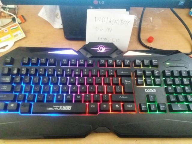 8. یک عدد کی بورد بسیار زیبا مدل Marvo K608 موجوده. کیبورد با نور ترکیبی بسیار زیبا و دارای کلیدهای بسیار نرمی هست. تنها مشکلش اینه که همونطور که توی عکس هم مشخصه یکی از پایه های نگه دارنده پشتش شکسته. فقط خود کیبورد موجود هست بدون جعبه. قیمت هم فعلا پیشنهادی هست اما آخرین قیمتی که ازش پیدا کردم مال اواخر 95 و دلار 3200 هست که 75 تومن بوده آکش. با توجه به دلار فعلی احتمالا باید حدود 250 الی 300 قیمتش باشه. https://www.lioncomputer.com/comput...eyboard/marvo/marvo-k608-gaming-keyboard.htmlمشخصات:کیبورد گیمینگ با نور پس زمینه ترکیبی بر روی کلیدهاجنس کابل: کابل با روکش نخیتعداد کلیدها: 104عددحساسیت کلیدها:50±15gطول کابل: 1.5mنوع اتصال: با سیمطول عمر یا ضربه‌پذیری کلیدها:5 میلیون مرتبه فشار برای هر کلیدمسیر کلیدها: 3.6±0.3mmنوع رابط: پورت USBوزن: 500g±10gابعاد: 490×225×45mmسازگاری با سیستم عامل های: Windows 10, 8, 7, Vista, XP, Mac os