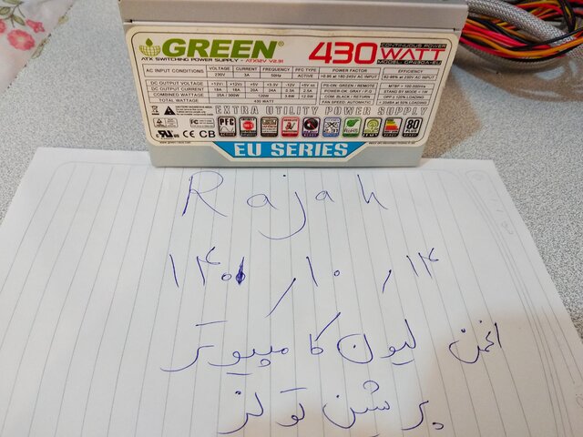 سلام وقت شما بخیر با فروش پاور GREEN 430W-EU در خدمت شما هستم پاور پلمپ ، کاملا تمیز و در حد می باشد که تصاویر گویا هستند دارای هشت پین پردازنده و 6 پین گرافیک قیمت 600 اول پرداخت بعد ارسال