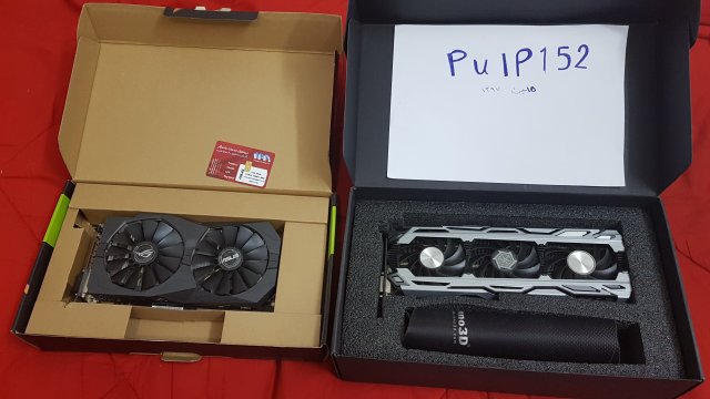5. یک عدد 1070x3 Ichill به قیمت ۲۸۵۰ لینک محصول https://emalls.ir/مشخصات_Inno3D-iChill-GTX-1070-X3-Air-Boss-8GB-Graphic-Card~id~343747 یک عدد 1050Ti oc strix 4gبه قیمت ۱۵۵۰ https://www.lioncomputer.com/computer/computer-components/graphic-card/nvidia/asus-rog-strix-gtx1050ti-o4g-gaming.html?utm_source=emalls&utm_medium=cpc&utm_campaign=clicky هر دو گرافیک سالم، 1050Ti به مدت حدودی ۴ یا ۵ ماه ماین شده، فقط اتریوم با دمای پایین ۱۰۷۰ به مدت ۷ ماه و باز هم فقط اتریوم کارتها سالم هستند اما گارانتی ندارند، ۱۰۵۰ به تازگی تموم شده یکساله بوده گارانتی ۱۰۷۰ هم برج ۶ یا ۷ اگه اشتباه نکنم ۳ روز مهلت تست داده می شود. معاوضه با مدل های 1080ti و 1080