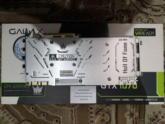 4. درود کارت گرافیک GALAX GeForce GTX 1070 Hall Of Fame http://www.galax.com/en/graphics-card/hof/galax-geforcer-gtx-1070-hof-210.html#jm-tab-specification سیستمی که کارت گرافیک روش نصب بوده فقط برای کارهای روزمره ، فیلم و چندتا گیم بصورت پاره وقت استفاده شده عین روز اولش نو و تمیز هستش جعبه و متعلقات کامل گارانتی ندارد قیمت: 4,200,000 تومان فروش ترجیحاً تهران حضوری