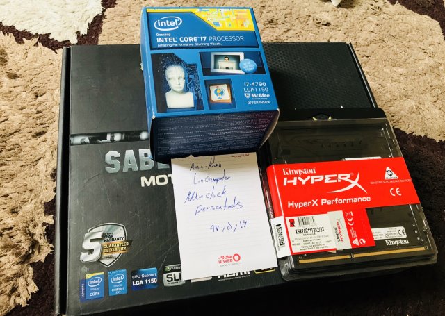 6. با سلام خدمت دوستان يك عدد مادربرد z97 mark 2 با جعبه و متعلقات خيلي خيلي تميز يك عدد سي پي يو i7 4790 با جعبه و فن اكبند اينتل يك پك رم هايپر با فركانس ٢٤٠٠ دو عدد چهار گيك ddr3 با گارانتي لايف سرير يك عدد سي پي يو كولر ماچو ترمالايت با يك عدد فن فابريكش(فقط براكت سوكت ١١٥٠ اشو دارم كه رو همين سيستم نصب بوده جعبه اينا نداره (انباريه حال گشتن نيس)) قيمت پايه براي تمام قطعات: سه ميليون و چهارصد گام افزايش ٣٠ هزار تومن فروش فوري:؟ اول واريز سپس ارسال در تهران بصورت حضوري در جاهاي ديگه بصورت پست پيشتاز خواهد بود( هزينه ارسال بعهده خريدار خواهد بود همون اول با پول قطعات اخذ ميشه چون پيش اومده برا دوستان ارسال شده دوستان فكر كردن پول ارسال شيريني ما بوده بهشون)