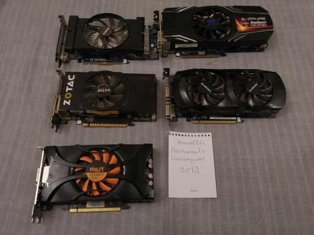 سلام تعدادی گرافیک به مشخصات زیر برای فروش ارائه میشود : - Palit GTX 560Ti 1G GDDR5 256BIT قیمت فروش : 580 - GIGABYTE GTX 460 1G GDDR5 OC 256BIT قیمت فروش : 550 - GIGABYTE GTX 550TI 1G GDDR5 OC 192 BIT فروخته شد - ZOTAC GTS 450 1G GDDR5 128BIT قیمت فروش : 450 هزینه ارسال با خریدار محترم.