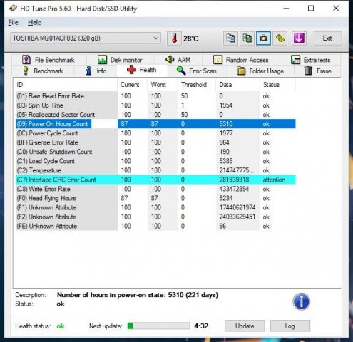9. سلام تعدادی هارد 2.5 اینچی به مشخصات زیر برای فروش ارائه میشود : - Toshiba 320G Sata 6 7200 قیمت فروش : 190 - Hitachi 320G Sata 3 7200 قیمت فروش : 180 - Toshiba 320G Sata 6 7200 قیمت فروش : 185 - Hitachi 320G Sata 3 7200 قیمت فروش : 180 -Toshiba 250G Sata 3 7200 قیمت فروش : 150 -Toshiba 250G Sata 3 5400 قیمت فروش : 145 عکس ها و تست های هارد ها به ترتیب زده شدن ، هزینه ارسال با خریدار محترم