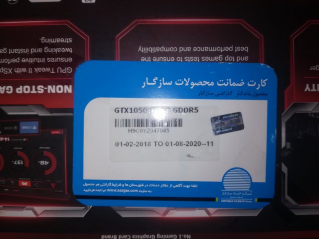 3. سلام یک عدد گرافیک به مشخصات زیر برای فروش ارائه میشود : ASUS EX GTX 1050 TI O4G - کارت بدون کارکرد (( فقط لیبل قوطی باز شده )) یا به عبارتی اکبند میباشد دارای گارانتی سازگار تا 2020/8 پایه : 1299 تبریز حضوری ، ارسال پیشتاز یا تیپاکس ، هزینه و مسئولیت ارسال با خریدار محترم