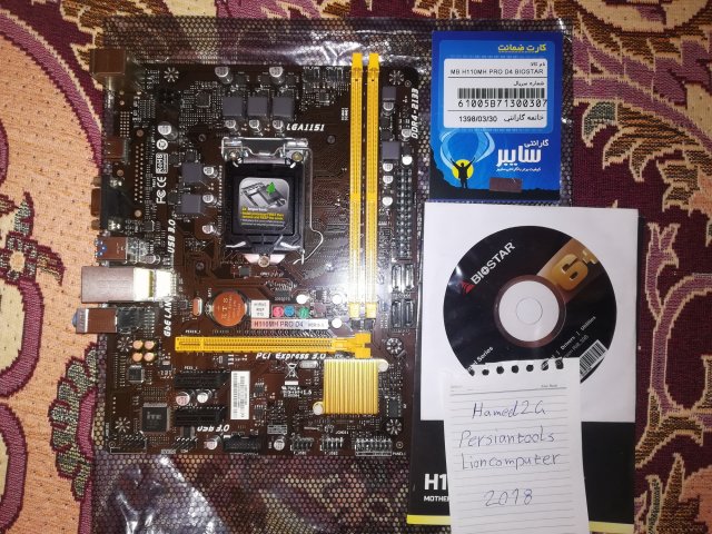 سلام یک عدد بورد 1151 به مشخصات زیر برای فروش ارائه میشود : Biostar H110MH Pro D4 بورد بدون کارتن و دارای گارانتی سایبر تا 98/3 و شامل دیسک درایور و دفترچه و پنل میباشد . پایه : 199 فوری : 239 فروش در تبریز حضوری ، ارسال پستی پیشتاز یا تیپاکس ، هزینه و مسئولیت ارسال با خریدار محترم.