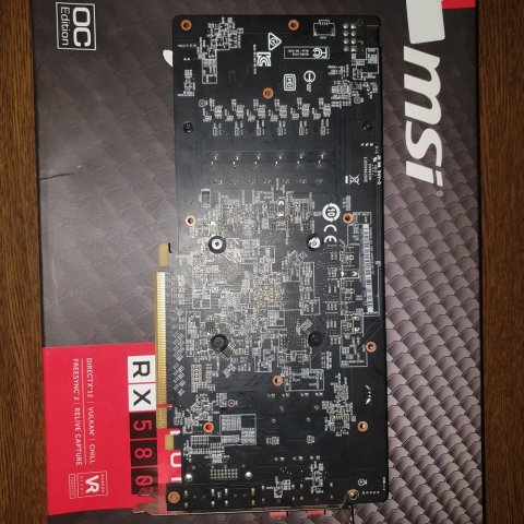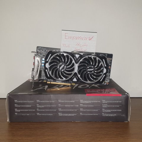 یک عدد کارت گرافیک RX 580 ARMOR 8G OC از برند MSI موجوده