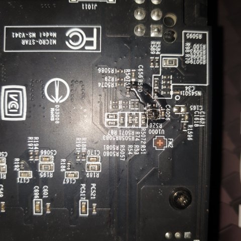 برای همین کارت به گارانتی گرین تهران ارسال شد و با هزینه 400 هزار تومان کارت رو تعمیر کردن و علتش رو هم گفتن افتادن یکی از قطعات روی برد بوده (عکسش رو قرار دادم)