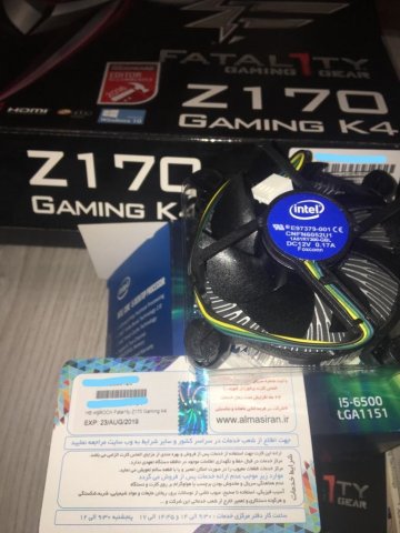 در تصویر مشخصه که مادربورد ارزشمند azrock gamin z170 fatiityK4 با جعبه و تمامی وسایل از جمله دفترچه و حتی مشمع ها(عین روز اول و تمیز) به همراه یک عدد CPU 6500 i5 که باکسه و جعبه نو و فنش اصلا استفاده نشده(زیر کولر بوده از لحظه اول و خمیر فن طبیعتا حتی خش نیفتاده) به فروش میرسه.