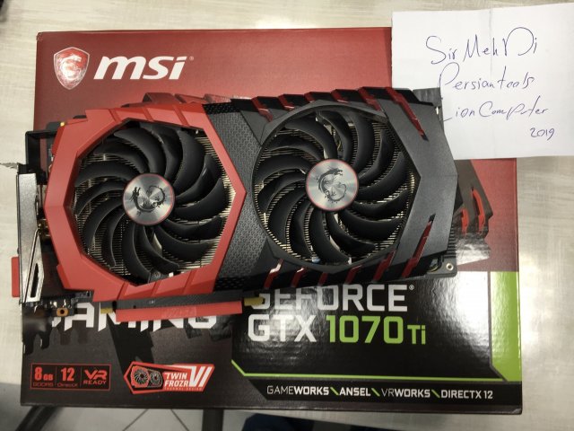 1. درود و عرض ادب قصد فروش کارت گرافیک MSI GTX 1070 8GB Armor رو دارم. دارای کارتن و متعلقات و بدون گارانتی . کاملا سالم با دمای عالی و سلامت فن ها ۱۰۰ درصد. نیاز به یک عدد ۸ پین داره. قیمت فروش : ۲۹۰۰