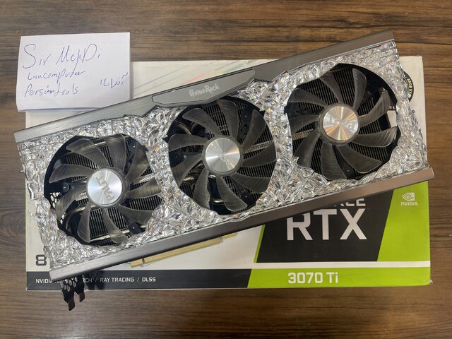 درود و عرض ادب قصد فروش 2 عدد کارت گرافیک PALIT GAMEROCK RTX 3070 Ti 8GB رو دارم. کارت ها مدتی ماین شدند و در حال حاظر در سلامت کامل هستند همراه با کارتن و متعلقات. دماهای نرمال بدون هیچ مشکلی. پشت کارت ها مقداری خط و خش دارد. قیمت فروش : 11750- 2 ارسال