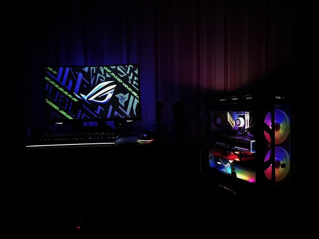 🟠🟡🟢🔵🟣🔴 MAINBOARD : ASUS ROG STRIX Z690A GAMING D4 CPU : INTEL CORE i7 12700K ALDER LAKE CPU COOLER : COOLERMASTER ML360 ILLUSION CPU FANS : 3X NOCTUA NF-F12 + 3X COOLERMASTER HALO VGA : ASUS ROG STRIX 4090 OC MEMORY : CORSAIR VENGEANCE PRO RGB (2*16) 32 GB 3600MHZ SSD : SAMSUNG 980 PRO 1TB , 2x SAMSUNG 970 EVO PLUS 2TB, SAMSUNG 980 1TB H.D.D : SEAGATE EXOS ENTERPRISE 10TB 256MB 7200 POWER : ASUS ROG THOR PLATINUM II 1200W CASE : COOLERMASTER MASTERCASE H500M SOUND CARD : CREATIVE SOUND BLASTER Z MONITOR : SAMSUNG ODYSSEY G7 27 240hz KEYBOARD : RAZER HUNTSMAN ELITE MOUSE : RAZER BASILISK V3- 4034 ارسال