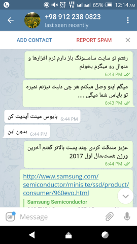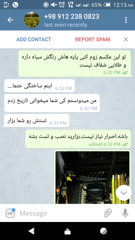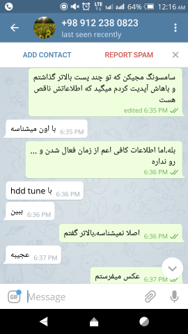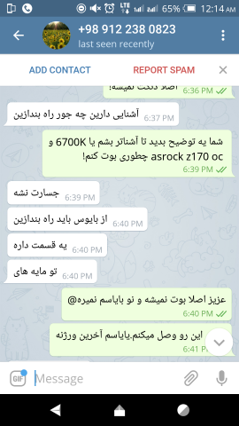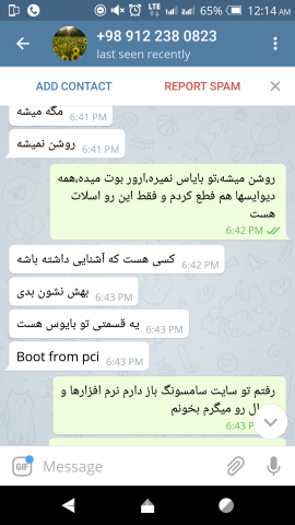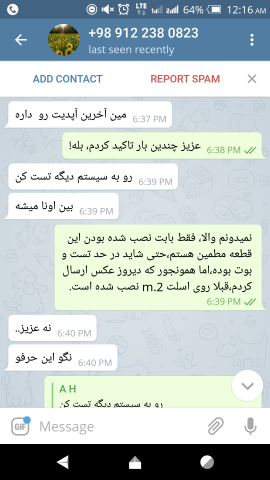 16. الان بحث سر سالم و خراب بودن نیست ، سر این هست که ایشون گفته اصلا نصب نشده اما وقتی دست بنده رسیده دیدم سرش به طور واضح رفته تو اسلت.ایشون میتونسته بعد از عکسهای ارسالی تو تلگرام تا صبح که ارسال کرده ، جهت تست یا آشنا شدن با کارکرد قطعه نصب کرده باشه و تست کرده باشه و ... بحث سر صداقت و گرنه مشکل شناخته شدن قطعه رو حل کردم.