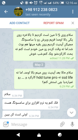 17. سلام.قطعه به دستم رسید و متاسفانه بر خلاف حرف ایشون نصب شده بود و کاملا جای نصب مشخص بود.با مین ازراک Z170oc formula با آخرین ورژن بایاس (ورژن 7.4) اصلا دتکت نمیشد و سیستم بعد بوت روی آرم ازراک هنگ میکرد ، که بعد از نصب روی 5 مین بالاخره روی مین گیگا x99 همکارم بوت شد و بالا اومد و با سامسونگ مجیگن فریم ویرش رو به آخرین ورژن آپدیت کردم.بعد رو بقیه مینها بالا اومد.متاسفانه توسط ssd life و hdd tune اطلاعات قطعه خونده نمیشه.دوستان اگر راهکاری هست که زمان فعال شدن قطعه و کارکرد واقعیش خونده بشه،لطفا راهنمایی کن تشکر.