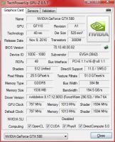 GeForce GTX 590 • Interface PCI Express x16 2.0 • Boost / Base Core Clock 607 • Memory Size (MB) 3072 • Memory Type GDDR5 • Memory Interface 768 bits (384 x2) • Memory Clock Speed (MHz) 3414 • DVI Connectors 3 • Mini DisplayPort 1 • DirectX Version Support 11 • OpenGL Version Support 4.1