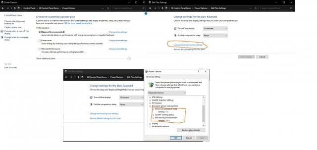 2. سلام فکر می کنم از power plan باشه تو کنترل پنل power options برین اونجا پاور پلن هاتون هست تو هر کدوم ادونس آپشن داره که یکی از گزینه هاش برای حداقل فرکانس سی پی یو هست چک کنید ببینید رو چند هست
