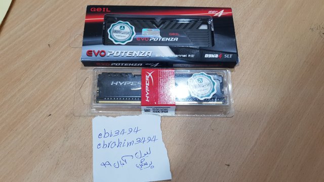 درود بر دوستان عزیز و گرامی 2عدد رم 8G ddr4 2400موجوده برندGeil و kingston قیمت هر دو با هم فقط 1550 -