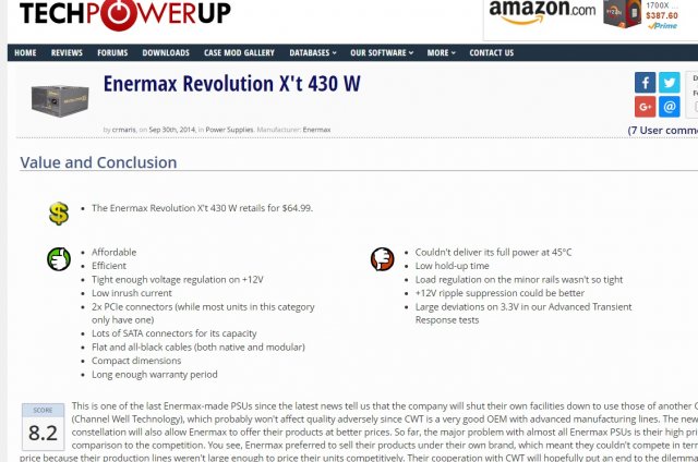 قیمت یکی از مشکلاته...صحبت اینه که خیلی از برندهای معتبر هم عملکردشون در همین اندازه ها هستش پاور انرمکس هم دقیقا همین مشکل رو داره و امتیاز برابر گرفته +12V ripple suppression could be better برای کسی که نمیخواد قبول کنه هر چی مدرک هم نشون بدی همینه -