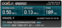 خبات کریمی داداش تشکر . ولی آخه من هرچی این استاندارد هارو با نت داخلی ضرب و تقسیم میکنن اعداد به دست اومده با عقل جور در نمییاد :D همین دیگه! اصن اعداد با استاندارد جهانی 512خعلی فاصله داره! درIDM هم در بهترین حالت سرعت دانم فراتر از 65کیلوبایت نمیره! با این اعدادی که شما گذاشتی به نظر میرسه نت شماهم512باشه(ولی آپلودت از من بهتره) این شیرینگ 1به 8 های تو ایران رو چه حسابی ـه آخه؟ مثلا من در PS4 نصب شبا که تست کانکشن میگیرن سرعت دانلودم 95ــــــه ولی تو روز فراتر از 40 نمیره! چه دلیلی میتونه بهتر از این داشته باشه که نصف شب از بین 8نفر 5نفر خوابن و مودموشون خاموشه:D