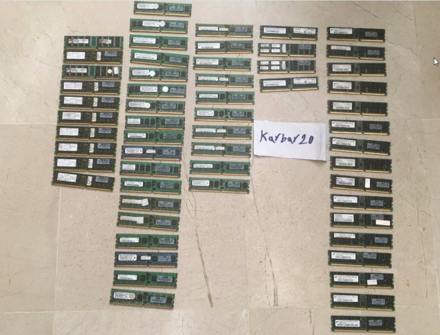 سلام دوستان فروش رم های سرور DDR1 و DDR2 به مشخصات زیر DDR 1 1GB ده عدد DDR 1 2GB شانزده عدد DDR 2 1GB هجده عدد DDR 2 2GB چهار عدد DDR 2 512 ده عدد کلیه رم ها کلی فروخته می شود و در صورت مشاهده غیر این گزارش می شود. قیمت : پیشنهادی تهران حضوری و شهرستان اول واریز و بعد ارسال می گردد.هزینه پست با مشتری می باشد.