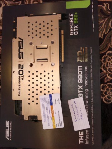 15. سلام قصد فروش کارت asus Gold20th 980ti رو دارم با یک سال و نیم گارانتی اصلی لایف قویترین 980ti و حدود پنج درصد قویتر از 1070 پایداری فوق العاده بالا در فریم دهی مدار تغذیه 14 فازی با خازن های مشکی ژاپنی لینک مشخصات https://www.asus.com/us/Graphics-Cards/GOLD20TH-GTX980TI-P-6G-GAMING/ ***دوستان پیشنهاد خودتون رو جدی بگیرید*** *****هرگونه اسپم یا کارشناسی گزارش میشه***** سوال فقط خصوصی پاسخ داده میشه تاکید میشه کارت به هیچ عنوان ماین نشده هفته ای کمتر از دو ساعت گیم گرافیک در حد نو هست قیمت پایه 2100 فروش فوری 2400 گام 50 پایان مزایده امشب ساعت ده شب مورخ 22.1.97 ابتدا واریز بعد ارسال یا واسطه لیون هزینه واسطه و ارسال با خریدار محترم