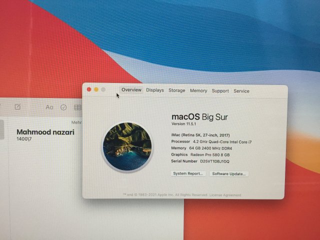 4. با سلام و درود با فروش یک دستگاه آیمک نایاب خدمت دوستان هستم مدل دقیقشو نتونستم پیدا کنم CPU:i7 quad 4.2 27 inch GPU:radeon pro 580 8GB ram:64gb 2400 drive:3.12TB display:5K retina توضیحات: دستگاه داخل استودیو بوده و بیشتر جنبه تو چشم مشتری داشته و کم باهاش کار شده و الان دیگه نیازی بهش نیست. دستگاه به شدت تمیز هست و خط و خش نداره به همراه موس و کیبرد فابریک و کابل لایتنینگ و برق با کارتن و وسایل توضیحات کامل داخل عکس ها هست قیمت دست دوم توی ایبی حدود 2000 دلار هست و خلاصه خیلی کالای نابی هست، بیشتر همرده های این دستگاه هم بدون گرافیک هستن، اما این rx580 داره و دیگه همه چی تمومه! قیمت پایه:61.500 گام:500 فوری:65 نکات: هزینه و مسئولیت ارسال در تهران با بنده، شهرستان ارسال به بنده و مسئولیت به عهده خریدار از آنجایی که دستگاه در اختیار بنده نیست، امکان انصراف ار فروش هست فقط اول واریز، مگر دوستان معتبر و عزیزان تهرانی که حضوری برای تست و تحویل مراجعه میکنند عکس با نام کاربری: