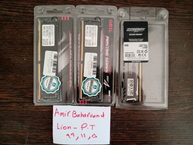 9. سلام دو مورد رم Geil 4G DDR4 2400 مجموعا 8 گیگ قیمت 800 یک مورد رم کروشیال 8G DDR4 2400 قیمت 750 کارت گرافیک گیگابایت GT730 2G DDR3 قیمت 1.500 برای خریدار کلی قیمت : 3 میلیون و ارسال رایگان
