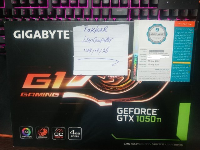 15. سلام و درود خدمت دوستان لیونی یک عدد کارت 1050Ti 4GB G1 GIGABYTE سالم و بدون هیچ مشکلی و در حد هستش و دارای گارانتی آواژنگ که تصویر کارت گارانتی هم پیوست شده. پایان مزایده ۲۴ ساعت بعد از آخرین پیشنهاد. پایه:1600 فوری:1750 گام: 25 اول واریز و سپس ارسال .هزینه ارسال هم به عهده خریدار محترم. باتشکر.