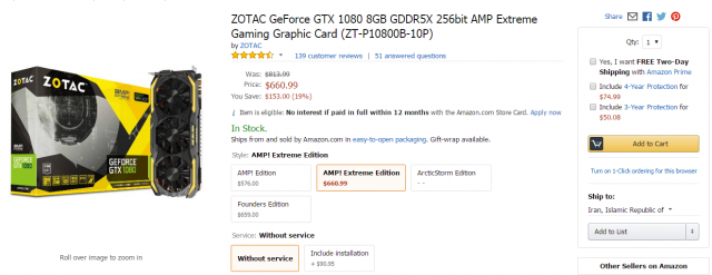12. تو صفحه خود محصول سمت راست قسمت شیپ تو جدا از قیمت و افت 150 دلاریش، انتخابی بودن گارانتی هم یکی از حسرت های ما ایرانی هاست !