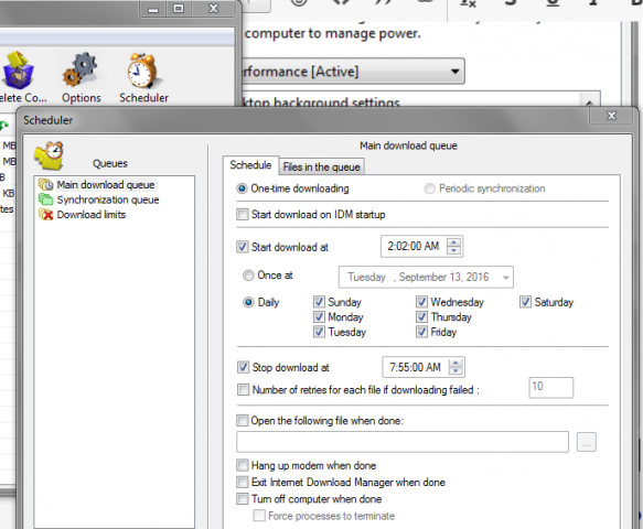 9. آقا اول برو تو تنظیمات پاور و دقت کن این دو گزینه فعال باشه من با IDM می تونم سیستم رو روشن کنم. اما فقط وقتی که سیستم هایبرنیت شده باشه و Schedule دانلود منیجر فعال شده باشه. بعد رو همون ساعتی که مشخص کردی دانلود خودکار آغاز بشه، سیستم رو روشن می کنه البته قبل از هایبرنیت خود آی دی ام رو هم باید باز کنی