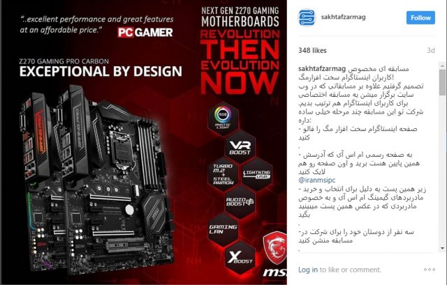 در مسابقه اینستاگرامی سخت افزار با جایزه یک مادربرد MSI شرکت کنید!