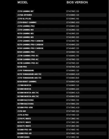 لیست مادربرد های سری 200 شرکت MSI به همراه نسخه و ورژن بایوسی که به طور کامل از Optane پشتیبانی میکند- 2 ارسال