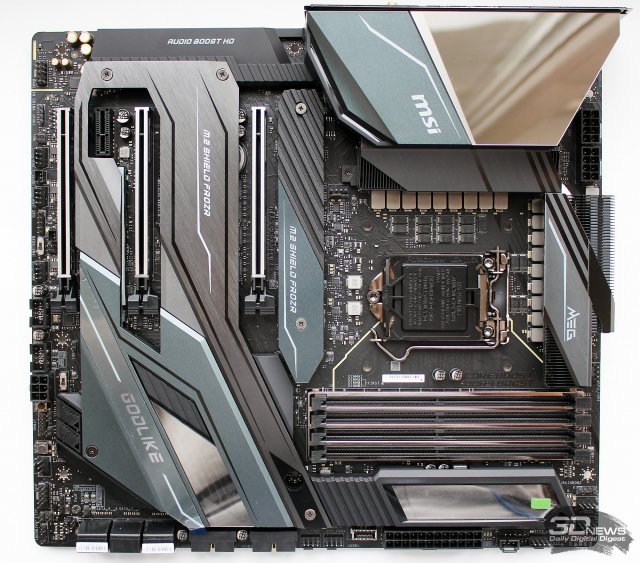تست و بررسی مادربرد MSI MEG Z490 GODLIKE توسط سایت 3DNEWS و کسب نشان منتخب نویسنده پشتیبانی از پردازنده های نسل دهم اینتل و سوکت 1200 مدار رگلاتور ولتاژ قدرتمند با کنترلر INTERSILمدار 16+1+1 فاز 90 آمپر دو سوکت 8 پین تغذیه پردازنده پشتیبانی از CORE BOOST و PCB تقویت شده 8 لایه طراحی بهینه خنک کننده قسمت مدار رگلاتور ولتاژ Frozr Heatsink پشتیبانی از رم DDR4 تا فرکانس 5000 و محافظ استیل آرمور پشتیبانی از DDR4 BOOST ایزوله سازیو بهینه سازی مسیر پردازنده و رم پلیت محافظ برای زیر مادربرد آماده پشتیبانی از نسل چهارم Lightning Gen 4 درگاه دو گانه تاندربولت 3 فوق سریع با سرعت 40Gbp سه درگاه فوق سریع M.2 با خنک کننده اختصاصی دو طرفه نورپردازی RGB اختصاصی MSI MYSTIC LIGHT داینامیک داشبرد 2 نمایش انمیشن و پارامترهای سیستم به صورت رنگی سیستم صوتی Audio Boost HDبه همراه تقویت کننده صوتی و ESS DAC کنترلر شبکه کابلی فوق سریع 10G به همراه شبکه وایرلس Wi-Fi 6 کلیدهای هوشمند بر روی برد برای تسلط کاربران حرفه ای بر مادربرد کارت افزاینده پورت M.2 دو درگاه نسل 4 به همراه خنک کننده فعال پشتیبانی از عیب یابی فوق سریع سیستم نرم افزار جامع Dragon Centerبرای مدیریت مادربرد مادربرد MEG Z490 GODLIKE به عنوان پرچمدار مادربرد های MSI Z490 به شمار می رود که فقط در بخش خنک کننده، امکاناتی مانند طراحی هیت سینک Frozr، فن مجهز به دو عدد بلبرینگ، فناوری Zero Frozr و سیستم تهویه در شیلد پورت های ورودی و خروجی پنل پشت ارائه می دهد. هر سه اسلات M.2 به کار رفته در این مادربرد به شیلد محافظ انحصاری با نام M.2 Shield Frozr مجهزند تا دمای درایو های سالید در بهترین شرایط ممکن قرار گیرد. مادربرد های سری MSI Z490 MEG از فناوری انحصاری Mirrored Power Arrangement به همراه کنترلر فازهای ISL بهره می برند و شانزده عدد Titanium Choke III وظیفه ارائه شدت جریان 90 آمپر را بر عهده دارند. دومین مادربرد قدرتمند ام اس آی در این خانواده با نام MEG Z490 ACE شناخته می شود که امکاناتی مانند فناوری Audio Boost HD به همراه چیپ ست صوتی ALC1220، فناوری ESS Audio DAC و آمپلی فایر مجزا برای هدست را در دسترس کاربران قرار می دهد. مادربرد MEG Z490 GODLIKE با فناوری انحصاری Dynamic Dashboard II به همراه نمایشگر OLED مجهز شده تا علاوه بر نمایش اطلاعات حیاتی سیستم، تصویر یا نوشته مورد کاربر را نیز به نمایش بگذارد. از دیگر امکانات مادربرد پرچمدار ام اس آی می توان به شبکه سیمی 10 گیگابیتی، پورت Thunderbolt 3 و اکسسوری M.2 XPANDER-Z GEN 4 S با پشتیبانی از قابلیت Smart Fan اشاره کرد. -