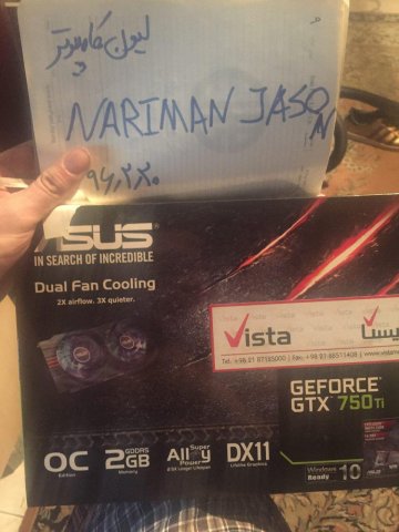 12. 1 عدد asus geforcwe gtx 750 ti فوری فروشی کارکرد زیر 1 سال قیمت پایهه330 اگر کسی تهران باشه تا 300 هم میدم .... هزینه ارسال را بنده تقبل میکنم ... من 1 topic دیروز نوشتم ولی چون 1 ساعت بود وارد سایت شدم قوانین را نمیدانستم و تاپیک پایان یافت ضمن عذرخواهی من دوباره ای تاپیک را میگذارم اینبار با رعایت قوانین .. تو تاپیک دیروز قیمت را 300 گفته بودم و الان هم این کمی بالا بود شامل کسانی که خارج تهران هستند(هزینه ارسال)میباشد
