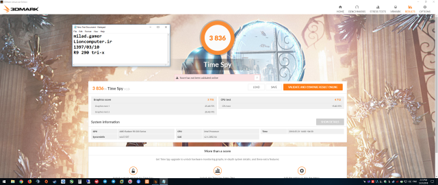 اینم عکس از تست ها و time spy و .... اگر برنامه دیگه ای مد نظرتون هست بگید تا بزارم