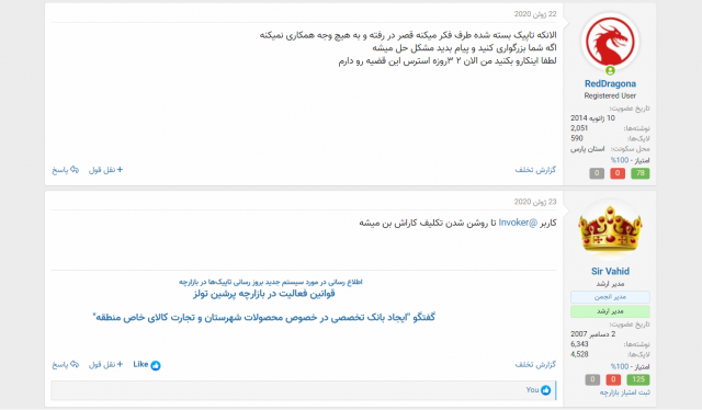 فروشنده گفته ۱ تومن رو میده و مانیتور رو هم نیخواد ولی من باز آدرس فروشنده رو دادم که این وسط چجوری بسته بین راه تهران شیراز گم شده معلوم نیست ایسام هم قانونش اینه که بعد ۳ماه پول رو برمیگردونه به حساب خریدار و طی ۲ شکایتی که کردم هر دوتاش رای اینماد این بود که قانون ایسامه و تخلفی ایسام نکرده و رای رو یه ایسام دادن این وسط من فرستنده یا گیرنده نیستم که بتونم پیگیری کنم (انگار جدیدا گم شدن بسته زیاد شده تو پست یک نفر ۲تا بسته هاش گم شده بود عکس ضمیمه میکنم) من نمیتونم اینجور فکر کنم چون کاربر invoker یک اینکه اصلا قبول نمیکرد بسته رو پس بگیره و میگفت چون کار پسته به من ربطی نداره و دو اینکه بعد رد شدن اینکه نمیتونه شونه خالی کنه تست جعلی رو ارائه داد ایشون اگر از اول منطقی رفتار میکردم هیچ بحث و مشکلی نبود و نه قضیه به شکایت میکشید و نه اینقد بحث میشد -