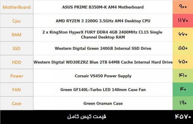 سلام. علیرضا جان، نمیشه انتخاب اشتباه به شما پیشنهاد داد چون 4میلیون با زحمت بدست میاد، و خرید تک رم "اشتباه" هست، ببینید برخی مواقع ما 10عدد پول میدیم 10عدد قدرت و امکانات میگیریم، پس اگر 5 عدد پول بدیم احتمالا 5عدد قدرت بدست میاریم. ولی اگر از یه حدی کمتر پول بدین میره سمت خرید اشتباه مثلا اگر 3عدد پول بدید ، نه 3 تا نه 2تا بلکه فقط 1عدد قدرت و امکانات بدست میارید و بصورت تصاعدی ضرر میکنید. یکی ازین اشتباهات خرید رم تک کاناله هست (بخصوص روی سیستم igpu) دومینش خرید مین بورد غیرقابل آورکلاک (بخصوص روی رایزن که براحتی 10% بدون هیچ کولینگ اضافه ای آور میشه) لذا من این سیستم رو به شما پیشنهاد میدم : سی پی یو که نسبت به قیمت بهترین هست تو این شرایط. اس اس دی، دیگه جز آپشن ها نیست بلکه جزو خرید حتمی هست، شده اس اس دی بخرید ولی هارد نخرید، کار خیلی عاقلانه تر از خرید هارد مکانیکی هست. گرین و کورزیر توی 400تومن تنها پاورهای مطمئن برای 3-4سال هستن، پیشنهاد میکنم کورزیر بگیرید که از سری 480 گرین 1عدد برق pcie اضافه تر دارن،پس فردا خدایی نکرده زبونم لال گرافیک گرفتید 2تا 6پین میخورد ، حداقل بتونید رو این پاور بالا بیارید تا گرافیک 200وات هم میشه بالا آورد اگر کولینگ خوب باشه،برای همینه "فن" رو اضافه کردم که یدونه IN داشته باشید و یدونه Out که مال خود کیس هست،قطعا میتونه بیشتر از 5درجه تاثیر دما روی تک تک قطعات بگذاره کیس ها هم همگی زیر 300-400تومن تقریبا امیدی به ظاهرشون نیست، پیشنهاد میکنم توی این شرایط به فکر زیبایی نباشید،زیبایی=هزینه، بگذارید سر فرصت بنظرم. ولی اگر تونستید هارد بگیرید، سمت 1ترا نرید، چون به نسبت قیمت وحشتناک گرون تره و انتخاب بدیه (حدود 500=1ترا، حدود 650=2ترا، مسلمه خرید اشتباهی هست حتی اگر پولتون نرسه) (قیمت ها و موجودی از فروشگاه همسایه هست چون تمام قطعات رو یکجا داشت) همگی قطعات نو هستن، گارانتی 1تا3ساله با این سیستم میشه دوتا2،لیگ آو لجند، فورتنایت، و اکثر MOBA ها رو روی 60فریم تنظیمات متوسط 1080P اجرا کرد، اکثر گیم های معمول روی 720P تنظیمات Low اجرا میشن روی 30 فریم، شاید برخی تایتل های تریپلA مثل بتلفیلد 5 مشکل داشته باشی ولی من توی تست ها دیدم طرف روی 60فریم اجراش کرده،بهرحال تو این شرایط سیستم خوبیه بنظرم. مادربورد های سری B میتونن گرافیک رو هم آورکلاک کنن.یعنی از 1100مگاهرتز میشه بیشتر هم آور کرد هرچند شخصا این مورد رو تست نکردم. و نکته آخر» اکثر مادربورد هایی که الآن فروش میرن بایوس آپدیت شده و مشکلی ندارن ولی اگر کوچکترین شکی داشتین، خود فروشنده به رایگان بایوس مادربورد رو آپدیت میکنن. موفق باشین.🙏 -