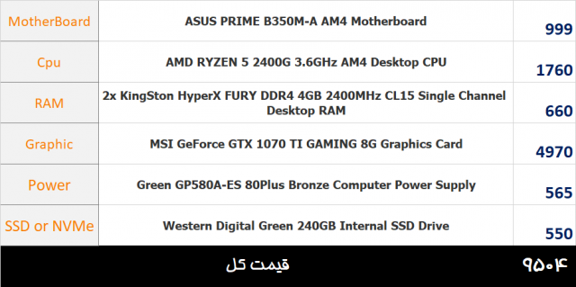TechBaMohsen پاسخی برای AlirezaGT86 ارسال کرد در تاپیک : مشاوره برای انتخاب قطعات سیستم