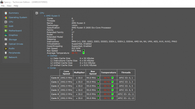 این هم یک عکس دیگه با جزئیات از دمای CPU در نرم افزار Speccy: اگر نرم افزار خاصی پیشنهاد میدین برای تست دقیق لطفا بگین تا تست کنم. -