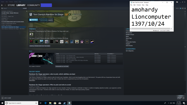 2. درود دوستان تصمیم گرفتم اکانت استیم شخصی خودم رو بفروشم با مشخصات زیر رینبو سیکس کامپلت ادیشن(همه اوپراتور ها باز سیزن پس سال سوم به همراه cyan weapon skin) بازی CSGO پرایم و اسکیل مچ میکینگ LE فور آنر استارتر ادیشن و پابجی با 72 ساعت تایم پلی قیمت 400 تخفیف برای خریدار باتشکر