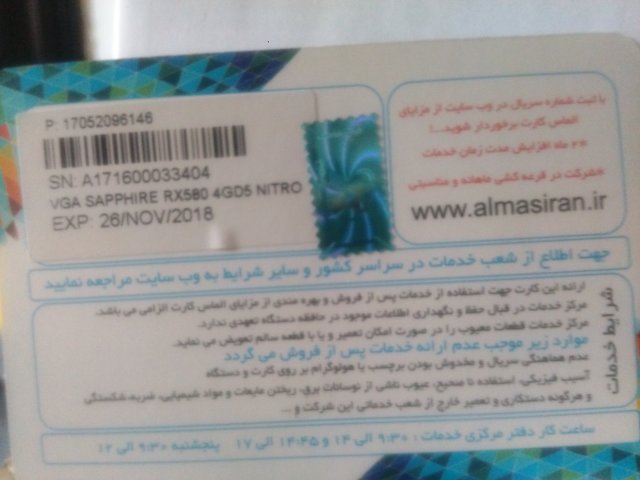 سلام من یه کارت msi rx 480 8gig دارم تا 21/8/2019 هم گارانتی داره به قیمت 290 گذاشتم برا فروش شمارمم 09118126816 هستش در خدمتم خواستی