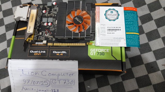 یک عدد کارت گرافیک ZOTAC GT 730 2GB 128bit DDR3 به فروش می رسد . کمتر 1 سال استفاده شده . کاملا سالم و در حد نو . گارانتی تا 25 آگوست 2019 + تبدیل VGA-DVI رایگان ( سالم ) . قیمت پایه : 350 فوری : 400 گام : 5 هزار ساری حضوری - در صورت پست هزینه اش به عهده خریدار محترم . نکته : پرداخت هزینه پست توسط خریدار به مامور پست ، دلیل نمیشه قیمت محصول کم بشه . = GPU-Z کارت ( همونطور که مشاهده میکنین تمامی مشخصات دیفالت هستند و اورکلاک یا دستکاری نشده ) : جا داره یه چیزی هم عرض کنم ؛ خودم شخصا بازی GTA V رو در رزولوشن 1366x768 در ترکیبی از تنظیمات Normal - High - Very High ، تونستم کاملا روون اجرا کنم . با توجه به اینکه برخی افراد فکر میکنند GT 730 توان اجرای GTA V رو در کیفیت بالا نداره ، لازم بود همچین چیزی رو عرض کنم تا دیگه اینطوری فکر نکنن . -