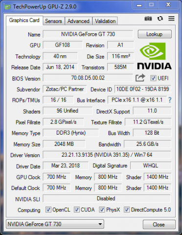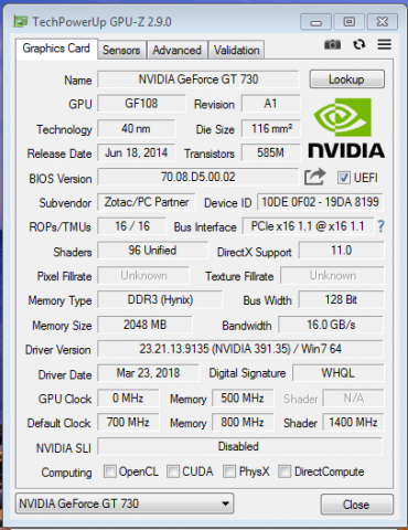 باسلام . یه راست میرم سر اصل مطلب . دوتا گرافیک دارم یکی GT730 و یکی G210 . تا همین چند دقیقه پیش داشتم از GT730 استفاده میکردم و G210 که برای مدت ها تو جعبش بود ، گفتم بزارمش روی سیستم ببینم سالمه یا نه و یه نوستالژی هم بشه ، بعد از دراوردن 730 و سوار کردن 210 دیدم تصویر نمیده اینجا بود متوجه شدم گرافیکم دیگه کار نمیکنه ولی خب این اصلا مشکلی نیست و هیچ جای ناراحتی نداره . حالا بعدش که 210 رو در اوردم و دوباره 730 رو سوار بردم کردم و بعد از لود شدن سیستم ، دیدم تسکبار و غیره حالت شیشه ای شونو از دست دادن از Services گزینه Desktope... رو غیر فعال و دوباره فعال کردم اما باز حالت شیشه ای نگرفت اما رزولوشن 1366در768 بود و کاملا عادی . اینجا بود که به ذهنم رسید gpu-z رو اجرا کنم وقتی کردم دیدم به این صورته : همونطور که مشاهده میکنین تسکتچر ریت و کلاک جی پی یو و بیشتر چیزا غیرافعالن و پهنای باند هم به شدت پایین اومده همینطور مموری کلاک و غیره . مشکل از کچجاست لطفا سریییع کمک کنید !!!! -