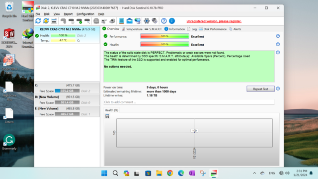 ۳- ssd 512gb klev nvme. به صورت آکبند از دیجیکالا خریداری شده بود. کارکرد ssd کلا ۹ روز بوده و ۱ ترابایت دیتا روش خورده و عملا مثل آکبند هست.