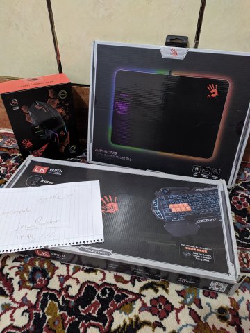 موس پد گیمینگ مدل Bloody MP-50NS که RGB خوش رنگی داره و ۹ ماه استفاده شده و ۹ ماه هم از گارانتی مونده .. یکم رنگ رفتگی داره پایینش و یکمی هم پارچش پریده که در عکس مشخصه