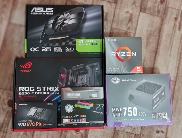 سلام به همه دوستان عزیز ابتدا ممنونم بابت راهنمایی های که این چند روز نسبت به بنده داشتید خب خوشبختانه من قطعات رو گرفتم و اسمبل کردم البته هنوز از اسمبل عکس ندارم ولی میگذارم ولی فعلا این عکس از قطعات و مشخصات شون باز هم از همگی ممنونم Ryzen 5 3600XT Asus Rog Strix B550-F Wifi PSU Coolermaster 750 White 32gb Ram tridentz 3200 RGB 250gb SSD Samsung 970 Evo plus Case Coolermaster Masterbox MB500 GT 1030 Asus- 35 ارسال