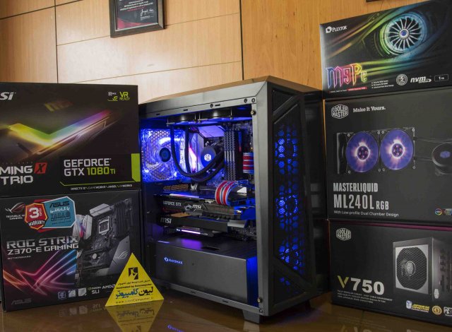 CPU:Intel Core i7-8700K Coffee Lake 8th Gen Processer M.B:ASUS ROG STRIX Z370-E GAMING LGA1151 Z370 8th Gen Mainboard RAM: Crucial Ballistix Elite 32GB 8GBx4 3466Mhz CL16 DDR4 VGA:MSI GTX 1080 Ti GAMING X TRIO 11GB GDDR5X SSD 1: Samsung 960 Evo PCIe NVMe M2 SSD - 250GB SSD 2:Plextor M9PeY M.2 PCIe Gen 3 x4 with NVM Express SSD - 1TB COOLER:Cooler Master MASTERLIQUID ML240L RGB CPU Cooler FAN: Deepcool Case Fan RF 120 – 3 in 1 PSU: Cooler Master V750 80Plus Gold Full Modular CASE: RaidMax SIGMA Black Mid-Tower Case CABLE:PCMOD Sleeved Cable 8pin PCI-E*2 PCMOD Sleeved Cable 24Pin ATX PCMOD Sleeved Cable 8Pin ATX قیمت حدودا 25- 688 ارسال