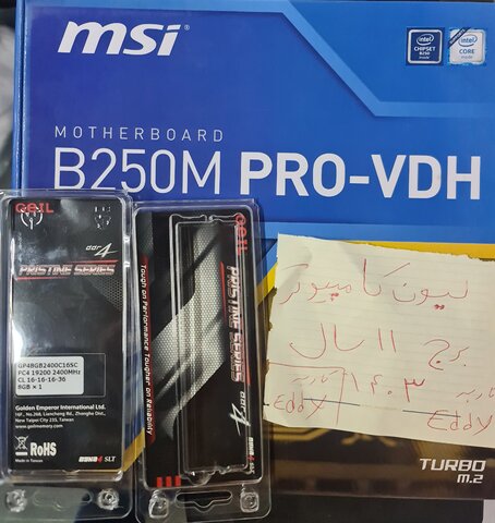 17. با سلام میرم سر اصل مطلب این باندل برای سیستم خانگی بود کم کارکرد و با نو مو نمیزنه بیشتر وقتها صاحبش خونه نبوده کاملا جعبه ها تکمیل و متعلقات فیکس فیکس میباشد پردازنده نیز باکس با فن است مشخصات: i5 6400 Msi b250m pro-VDH 2x8g 2400 geil perestin cl16 pcb black =16g به کسی که بالاترین قیمت رو بده تقدیم میشه مدت مزایده کوتاه میباشد به علت نیاز مالی و مشکلات فراوان اقتصادی... پایه ۵ت ناقابل گام ۲۰۰ت فوری ۷ت