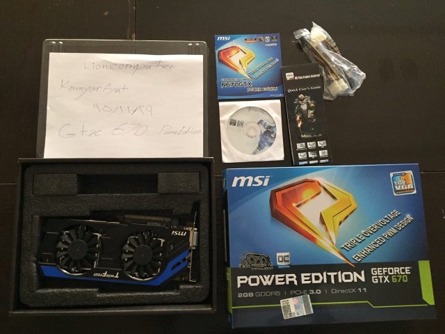 يك عدد كارت گرافيك GTX 670 MSI power edition به فروش ميرسد كه نسبت به ساير كارتهاي مشابه قويتر است( همان gtx 670 معمولي و حتي gtx 680 كه در تستها مقايسه شده اند ) و در بسياري از تست ها و بنچماركها به وضوح قويتر است. كارت به دليل ارتقاء سيستم به فروش ميرسد ١٠٠٪ سالم و براي كارهاي رندرينگ، هسته هاي كوداي آن نيز به درد ميخورد(انيميشن و طراحي داخلي). بازي ها هم با كيفيت مناسب اجرا ميشون و آخرين بار Metal gear solid ground zero رو 1920*1080 با كيفيت اولترا اجرا كرد. كارت شامل جعبه به همراه تمامي متعلقات ميشود و حد اقل يك پاور ٥٥٠ وات يا بيشتر رو پيشنهاد ميكنم . قيمت فروش ٥٥٠.٠٠٠ تومان . قيمت خريد كارت ١.٧٠٠.٠٠٠ هزار تومان بوده و فاكتور خريد آن نيز موجود است و ضميمه شده. در پايين تعدادي از بنچماركهاي گرفته شده از بازي ها رو قرار دادم كه تفاوتش نسبت به كارتهاي مشابه معلومه. قطعه كاملا سالم و تميز است حتي كاور اتصالاط و كانكتور ها نيز روي آن قرار داده شده مثل روز اول.