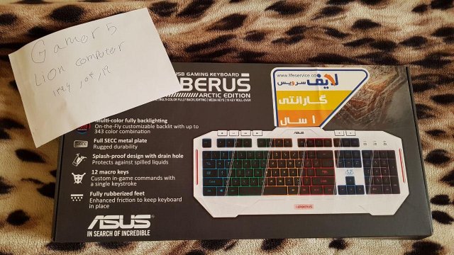 قیمت : لیون خودمون نسخه معمولیش رو گذاشته 168 تومن. این نسخه Arctic هست که تفاوتش تو رنگ بدنه سفید هست و اینکه برخلاف Asus cerberus معمولی که نور پس زمینش فقط تو دو رنگ ابی و قرمز تغییر میکنه تو این نسخه میتونید 343 ترکیب رنگ مختلف رو برای کیبورد در بیارین . گارانتیش هم لایف سرویس هست.